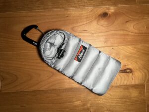 このアイテム、名前の通り“スマホ用の寝袋”。アウトドアブランドNANGAらしい、ふんわりした中綿入りのナイロン素材で、見た目もかわいい。